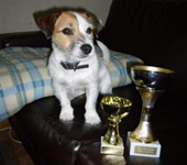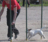| Agility Syyskuussa-07 Lilli oli ensimmäisissä möllikisoissa ja voitti nollaradalla. Pietarsaari epävirallinen agilitykisa 04.03.2008 Tuomari: Marica Kjötar-Virtanen Mölli-mini: 0 ratav., ei aikav., sijoitus 2 1 luokka: hyl. Vöyri epävirallinen agilitykisa 24.03.2008 Tuomarit: Tomas Berglund ja Sari Mikkilä Mölli-mini: 0 ratav., ei aikav., sijoitus 2 1 luokka: hyl. Pietarsaari epävirallinen agilitykisa 15.4.2008 Tuomari: Marica Kjötar-Virtanen Mölli-mini: 0 ratav., ei aikav. sijoitus 1 1 luokka: 0 ratav., sijoitus 2 Pietarsaari 17.05.2008, Minna Väyrynen A 0 ratav., -0,59, sijoitus 4 = 0 rata B 0 ratav., -1,14, sijoitus 2 = 0 rata (Nänsy games voittaja Pietarsaari 17.05.2008 parhaat tulokset A+B kisat, 1 luokka) Vaasa 25.05.2008, Johanna Nyberg/Sari Mikkilä F 0 ratav., 18,83 aikav., sijoitus 6 G 10 ratav., 31,17 aikav., sijoitus 5 Kokkola (Klag) 13.07.2008, Vesa Sivonen E 0 ratav., 29,98 aikav. ei sijoitusta. Näyttely Kajaani 6-7.1.2007 Tuomari: Markku Kipinä Pentuluokka Kooltaan ja mittasuht. erittäin hyvä pentu. Pitkähkö ja kapea pää, huonosti kannetut korvat. Hyvät silmät ja purenta. Eturaajat voisivat olla suoremmat. Hyvä häntä. Köyristää selkää seistessä. Liikkuu reippaasti hyvällä sivuaskeleella. Tulos: PEK1 Ryhmänäyttely Ähtäri 18.2.2007 Tuomari: Paavo Mattila Junioriluokka Hieman vaisusti esiintyvä hyvä narttu. Hyvänlainen pää. Kaula voisi olla pitempi. Eturaajat voisivat olla vieläkin suoremmat ja säkä korkeampi. Hyvät takaraajat. Hyvä hännänkiinnitys. Töpöttävät liikkeet. Saisi esiintyä ryhdikkäämmin. Tulos: H Vaasa 14.4.2007 Tuomari: Moa Persson Junioriluokka Mycket god. Härligt tikhuvud med utm. pigmentering. Tillräckliga vinklar bak, frambenen kunde varit rakare. Utm. bröstkorg. Bra uppländ rygg i rörelse. Knapp knävinkel. Korrekt i has. Fin päls o. svans. Lite kort i steget. Pga ländryggen priset. Tulos: H Kokkola 14-15.7.2007 Tuomari: Harry Tast Junioriluokka Rungossa oikeat mittasuhteet. Kaunismuotoinen narttumainen pää. Pitkät riippuvat korvat. Kauniit tummat silmät. Raajoissa hyvät kulmaukset ja luusto. Selkään tulee jäntevyyttä liikkeessä. Oikein asettunut häntä. Erinom. karvanlaatu. Liikkeessä kyynärpäät ulkokierteiset. Itsevarma ja ryhdikäs. Tulos: PN2 (ERI VASERT) Syksy 2007 Tuomari: Carl-Gunnar Stafberg Ruotsi God typ. Nätt feminimt huvud med slarviga öron. Bra bett. Skulle ha en stramare front. Välvd ryggrörelse. Bra svans. Bra benstomme. Sträv päls. Rör sig lite kort. Tulos: H |