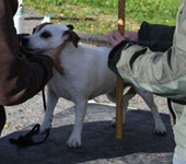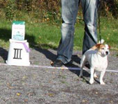 | Näyttely Vaasa 14.5.07 Tuomari: Moa Persson, Ruotsi Erittäin hyvä. Narttumainen pää. Erinomainen pigmentti. Riitävät etu- ja takakulmaukset. Suorat kauniit etujalat. Erinomainen rintakehä. Vähän valeraskautta ja näyttää siksi vähän lihavalta. Niukat kulmaukset polvessa, riittävästi kintereessä. Kaunis karvapeite. OK liikkeet. Hyvä linjakkuus. Jun. EH 2. Seinäjoki 20-21.10.2007 Tuomari: Carl-Gunnar Stafberg, Ruotsi Behöver bli självsäkrare. Lite tunnt nesparti. Bra ögon o öron. Bra hals o rygg. Lite rak bak. Bra benstomme.bröstkorg. Bra svans. Behöver ringträning. JUN H Kevät 2008 Vaasa KV-Vasa INT Tuomari: Veli - Pekka Kumpumäki, Suomi Hieman pyylevässä kunnossa esitettyujo narttu, Vielä pieni kevyt pää, suhteessa runkoon. mutta hyvä ilmeinen. Voimakkaammin kulmautunut takaa, kun edestä.Hieman lyhyt rintakehä luisu lantio ja häntä saisi olla korkeammalle kiinnittynyt. Liikkuu jäykästi edestä. Taka askeleen tulisi olla pidempi. Erinomainen luusto. Vaikuttaa alakuloiselta. NUO H Tervajoki RN Tuomari: Pirjo Hjelm, Suomi Vähän pulskassa kunnossa esitetty, mittasuhteeltaan, oikea, pää hieman voimakas kallo-osastaan, hyvä purenta & silmät & korvat. Riittävä, kaula, hieman niukasti kulmautunut, etuosa. Hyvät eturaajat. Hyvin kehittynyt rinta. Riittävät kulmaukset takaa. Liikkeet OK. AVO EH 4 Vaasan russeli-riehan mätsärissä 26.9.2010 Peppi oli narttujen kolmas :) |