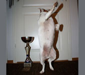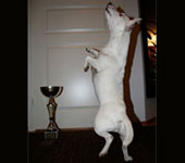 | Agility Olen käynyt muutamissa epävirallisissa kisoissa Wandan kanssa ja melkein aina on Wanda voittanut. Nyt ei olla harrastettu hetkeen, mutta kunhan Wanda perheineen pääsee taas Vaasaan muuttamaan, niin eiköhän sitten taas päästä aloittamaan. 2.5.07 Rantareviirin avajaisissa mölleissä 5. Wandan muutettua takaisin Vaasaan aloitimme keväällä jälleen agility harjoitukset aivan alusta. 5.6.07 Rantakupin mölleissä 3. Vöyrillä 28.6.07 Rantakupin mölleissä 6. Ocan kentällä 23.8.07 Rantakupin mölliluokassa BAC kisoissa 5. ratav. 15 tulos 15 Rantacupin yhteistuloksissa Wanda oli jaetulla kahdennellatoista sijalla 29. mini, midi ja maksikoirista. 11.9.07 Voyrillä epävirallisissa kisoissa Mölleissä sij. 1. ratav. 0. aikavirh. 0 tulos -15.60 1-luokassa sij. 2. ratav. 0. aikavirh. + 7.16 tulos 7.16 Talvi-kuppi Seinäjoki 13.1.08 sij 1. aika 29..97 ratavirheitä 0 aika -15.03 17.2.08 sij. 6. aika 24.97 ratavirheitä 0 tulos -10.03 16.3.08 sij. 3. aika 21.78 -8.22 ratavirheitä 10 tulos + 10 Wanda voitti koko Talvi-kuppi kilpailun mölliluokan Seinäjoella, kun kaikki kolmen osakilpailun tulokset laskettiin yhteen :o) Ensimmäiset viralliset kisat wanda aloitti 29.3.2008 Vöyri 29.3.08 A-kisa 3. ihannea. 61.00 aika -2.66 ratav. 10 tulos 10 B-kisa Hylly Vöyri 8.6.08 Sijoitus 2. ratav.0 tulos 0,56. Kokkola 12.6.08 Sijoitus 2. ratav.0 tulos 0. 2.5.2009 Wanda nousi agilityn 2-luokkaan. |