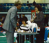 | Näyttely 17.8.2003 Vaasa, tuomari Hans Lehtinen Wanda, junioriluokka. Kauniit mittasuhteet. Hyvin kaunis pää, liian keveät korvat. Hyvä kaula. Hyvä kaareva rintakehä. Suorat hyvät eturaajat. Käyristää selkäänsä. Pitäisi seistä ja liikkua paremmin takaa. Oikea laatu. JUN EH 17.4.2004 Vaasa, Petter Fodstad Wanda, nuortenluokka. Feminin. Bra huvud men saknar pigment på vä ögonlocksrand. Bra hals. Står bra bå sina ben. Önskar rakare överlinje. Tillräckligt vinklad bag. Behöver ringträning. NUO H |